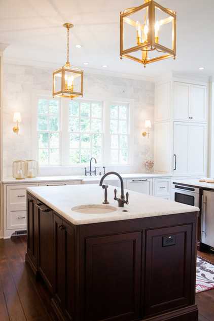Еще подвесные и точечные светильники идеально подойдут для размещения над кухонным островом.