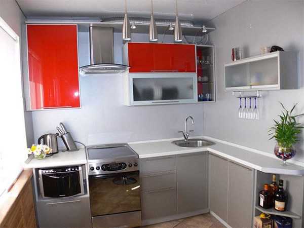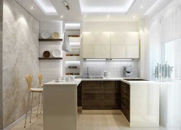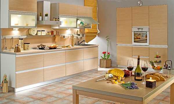 Для кухни с низким потолком лучшим вариантом послужит установка линейного осветления со встроенными светодиодами. Небольшие размеры светильников могут содержать приборы с галогеновыми диодами.