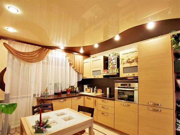 Для этой цели лучше всего использовать два уровня освещения. Первый уровень находится на основном потолке или в сооруженном коробе над верхними шкафчиками.