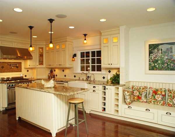 - В кухне желательно избегать резких контрастов, образуемых работой осветительных приборов.