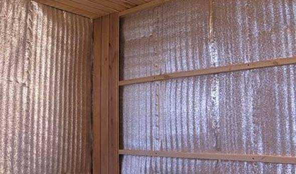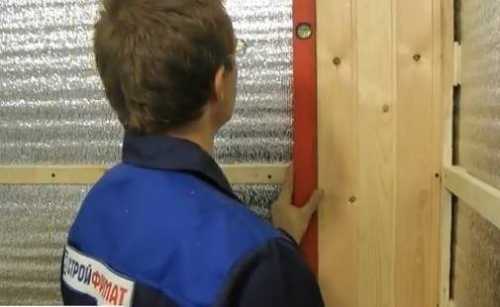 Когда стены утеплены, их необходимо обтянуть паровлагоизолирующей пленкой. Она расправляется по всей площади поверхности, натягивается и крепится к каркасу с помощью строительного стиплера. Места соединения пленки рекомендуется проклеить специальным скотчем, по типу фольги.