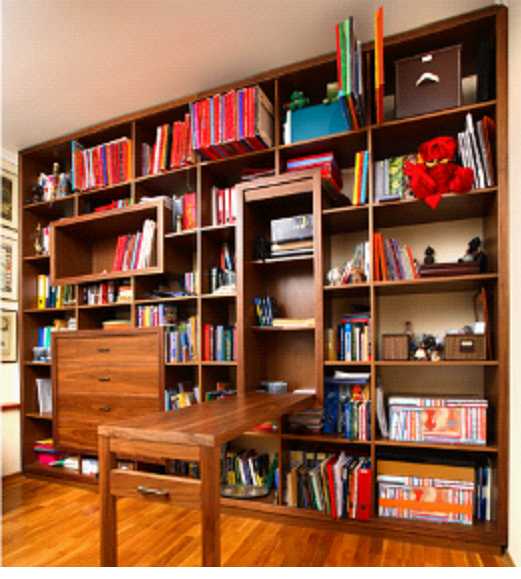 Если у вас есть полноценный кабинет, возможно, откидная столешница к стене вам не нужна. Ведь у вас достаточно пространства, чтобы поставить полноценный рабочий стол.