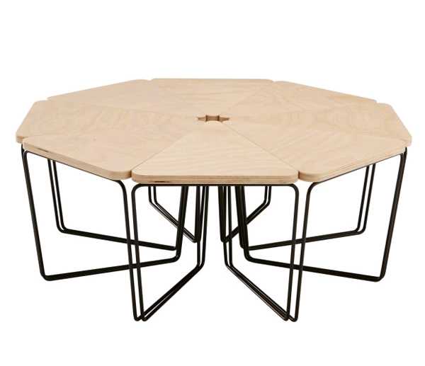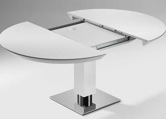 - Тот же вариант, но плоскости имеют закруглённые формы, и стол в развёрнутом состоянии получается круглый;