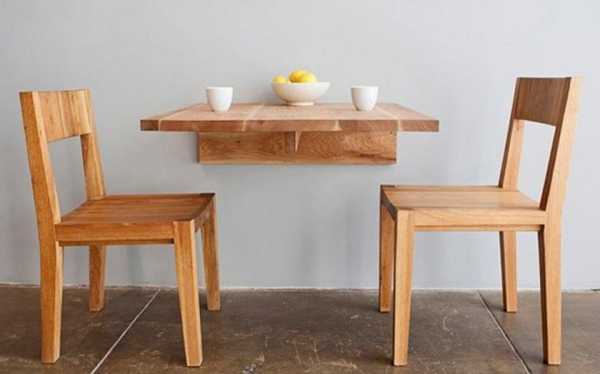 Для экономии свободного пространства помещения можно установить откидной стол, который легко сделать своими руками. Он состоит из столешницы на подъемном механизме. С помощью фиксаторов и навесов, стол крепится к стене, а при необходимости – легко раскладывается.