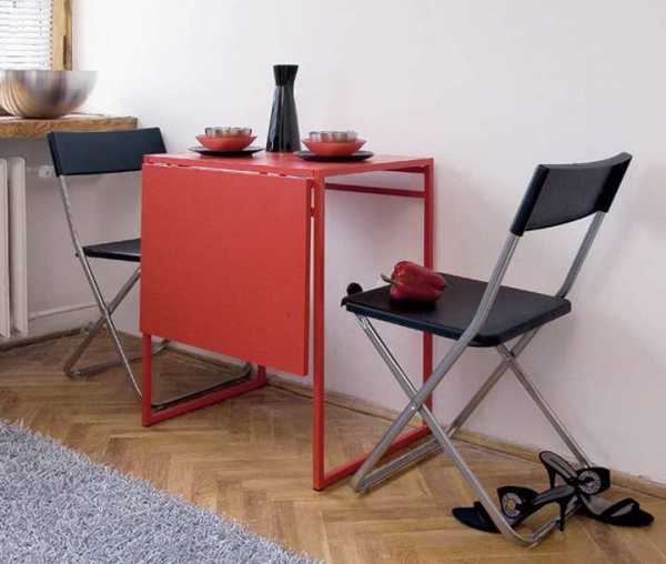 Если к столу полагается 1-2 посадочных места, то разумно выбрать складные стулья или табуреты, так как стулья со спинками займут много места