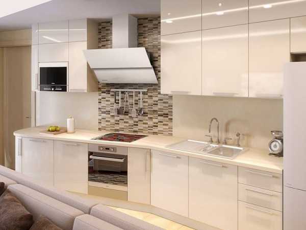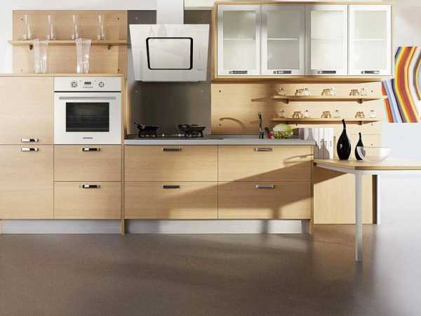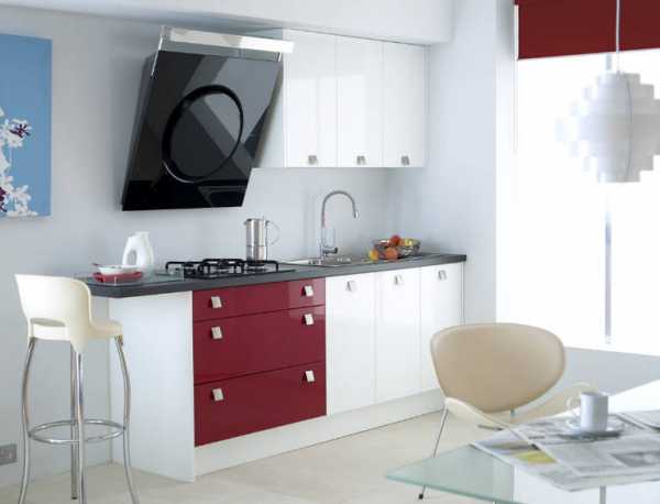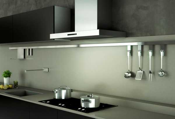 Встроенная в кухонный гарнитур пристенная вытяжка позволит скрыть самую неприглядную часть воздуховода и вытяжного оборудования. Мало того, что ее можно монтировать в шкаф, там еще и место для кухонной утвари останется