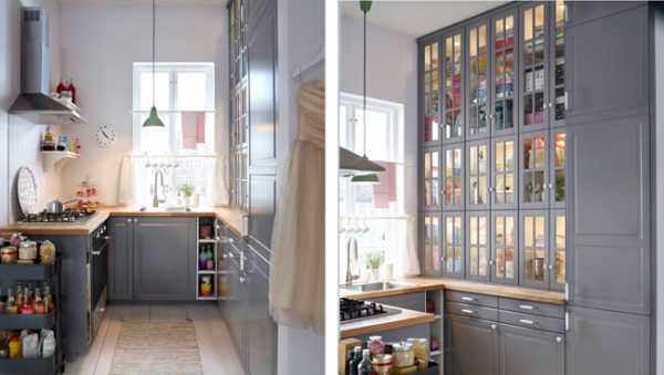- при недостатках планировки (особенно в квартирах советского образца) можно использовать дополнительные функциональные элементы, которые повышают удобство в эксплуатации – выкатные полки, полки-карусели и т.п.