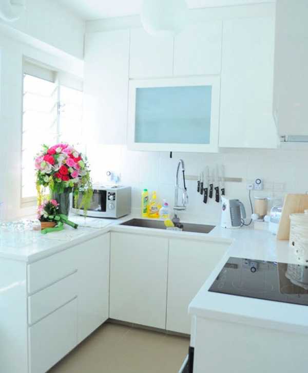 Для маленькой кухни рекомендуется выбирать светлые тона