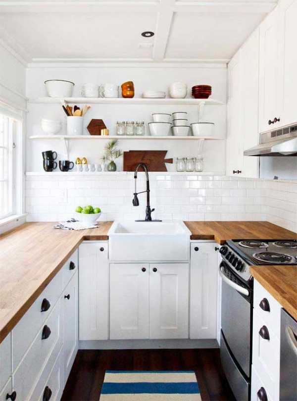 Если кухня небольшая, лучше отказаться от навесных шкафов