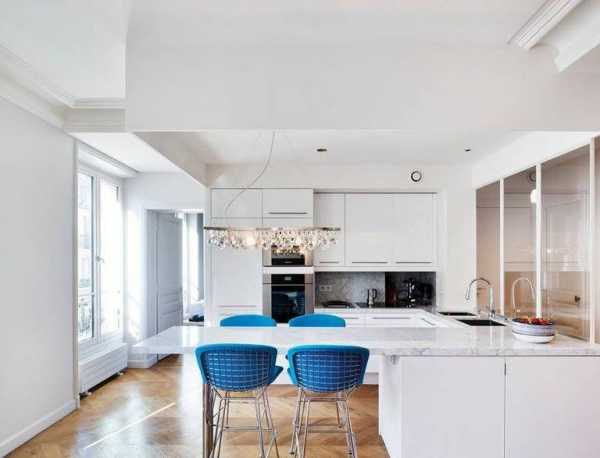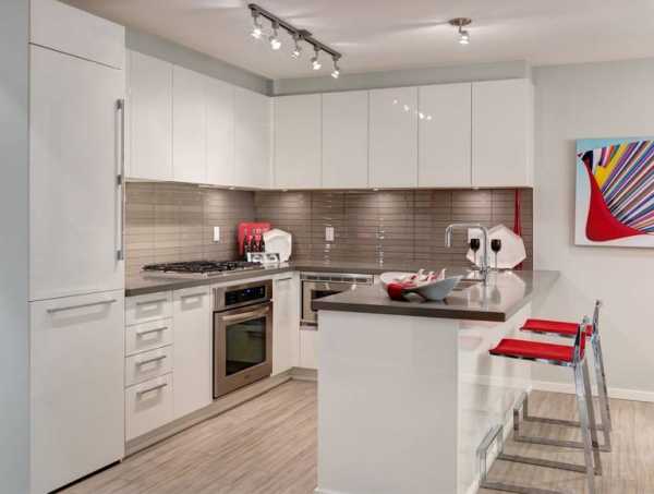 В тех квартирах, где кухня совмещена с гостиной, П-образная планировка считается одной из самых удачных. Помещение для этого необязательно должно быть большим. Такие кухни зонируют пространство, отделяя место отдыха от места приготовления пищи.