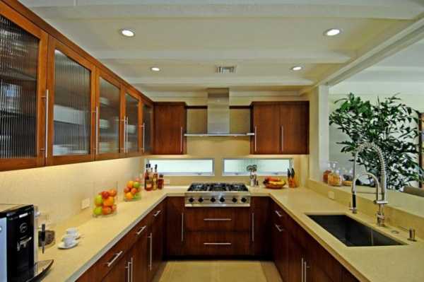 П-образная планировка — удачный образец организации кухонного пространства. Если раньше эти кухни можно было увидеть только в западных фильмах, то сейчас такой вариант можно обустроить даже в маленькой квартире. Для больших семей и тех, кто любит готовить такой вариант станет хорошим выбором.