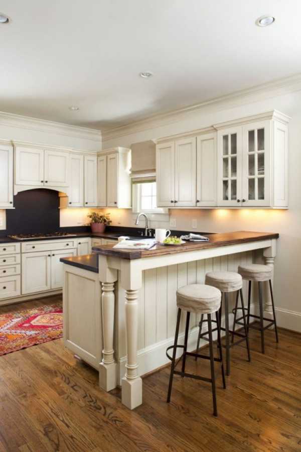 Кухни с «островом» – это уже для совсем больших помещений, начиная от 20 квадратных метров. Даже на 18 квадратах остров будет выглядеть сомнительно, так как, для того, чтобы был «на месте», расстояние вокруг него должно быть не менее 1,5 метра в окружности.