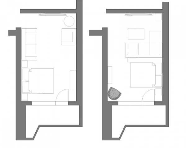 - В третьем варианте, жильё отделывается для человека, имеющего надомную работу или для пары, которая любит принимать гостей. В небольшой комнате делается спальня. Кабинет размещается на тёплой лоджии. Просторная комната отводится для обустройства гостиной. Угловой просторный диван с барной стойкой размещаются там же.