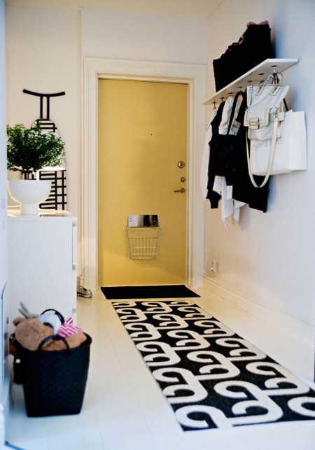 Чаще всего в прихожей сразу при входе в квартиру лежит небольшой коврик. Покупка такого коврика не составит труда: главное, чтобы он соответствовал общему стилю и, конечно же, настроению хозяев квартиры. Можно подобрать коврик, который будет отличаться от общего интерьера и выполнять роль особого акцентирующего «пятна», создавая чувства новизны. Но в этом случае необходимо обязательно использовать дополнительные аксессуары в стиль ковра: рамочки, картины, выключатели соответствующего стиля и другое.