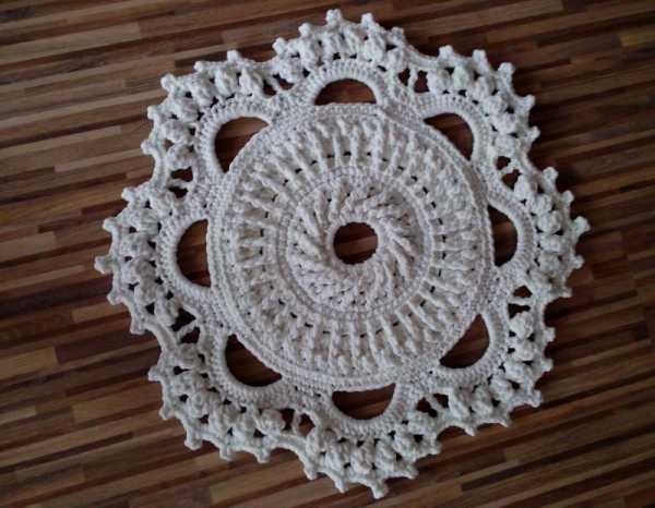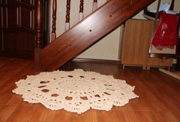 Прихожая в стиле прованс, кантри или экостилистике предполагает простые домотканые дорожки или небольшой круглый коврик, связанный вручную большим крючком. Такие аксессуары подходят для этнических стилей или «под ретро».