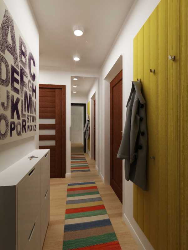 Планировка многих городских квартир вообще не предполагает отдельной прихожей – от входной двери простирает длинный коридор или даже два, в разные стороны. Идеальный вариант для такой обстановки – резиновый коврик у входа и ковровые дорожки во всю длину коридора.