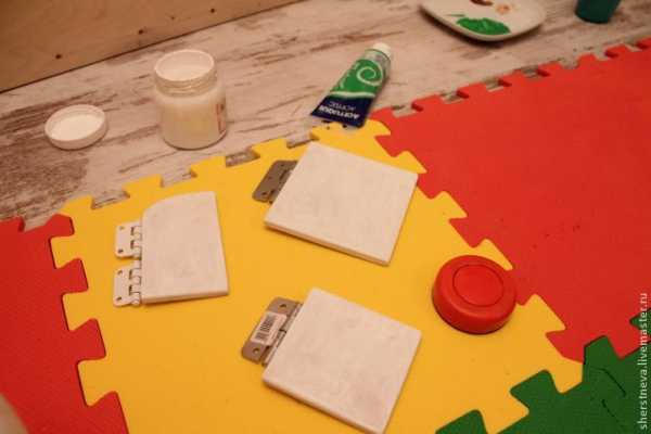 Такое панно хорошо тем, что со временем можно добавлять элементы, чтобы подогреть интерес малыша, у нас, например, в проекте добавить несколько включателей-тумблеров и телефонный диск (у дедушки в закромах нашли).