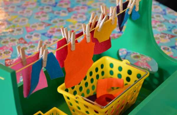 - Прищепки можно использовать и в других мелкомотрных играх. Развешиваем бельё: