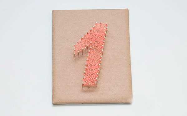 - Положите шаблон цифры на дощечку и вставьте гвоздики по контуру.