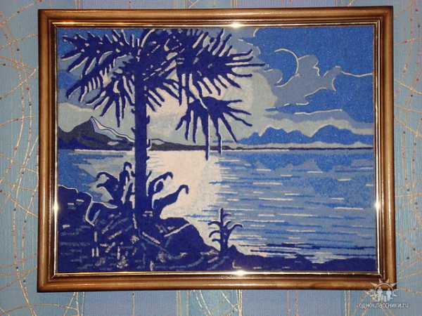 После этого заклеиваем те места, которые остались не заклеенными. Обратно ждем высыхания. Потом, но это уже «высший пилотаж», навыки которого появляются после большой практики, можно наносить на уже засохшие цвета соответствующие оттенки. Вот пожалуй и все. Скажу, что если посмотреть на законченную картину с расстояния 1-1,5м, то отличить ее от написанных маслом очень трудно.