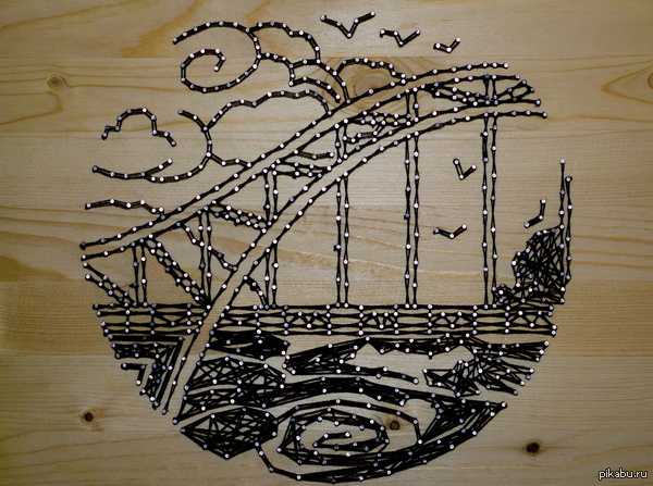 Изготовление картины из гвоздей и ниток: пошаговые фото