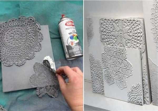 Кружево — произведение искусства само по себе. Его можно просто натянуть на контрастную подложку. Вот вам и картины из необычных материалов.