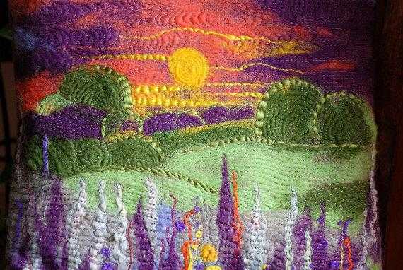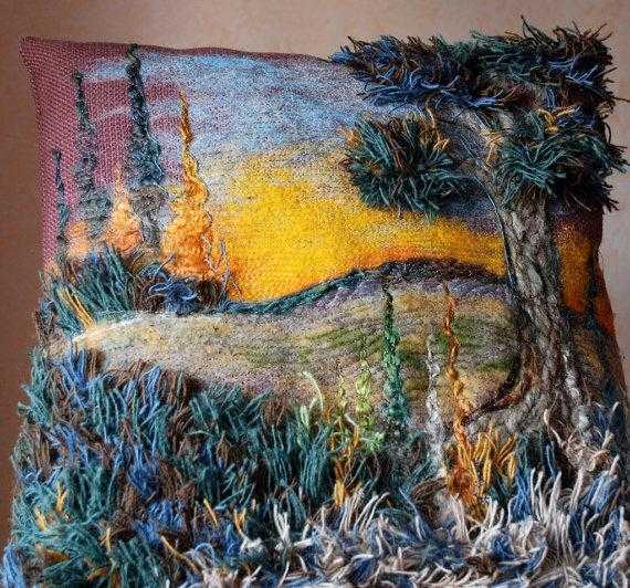 Вот такие необычные картины можно делать из шерсти используя технику валяния