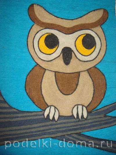 Это все. Когда все заполнено, оставляем готовое панно из ниток сохнуть на несколько дней. После высыхания клея его можно покрыть прозрачным лаком (берите на водной основе — и сохнет быстро, и не пахнет).