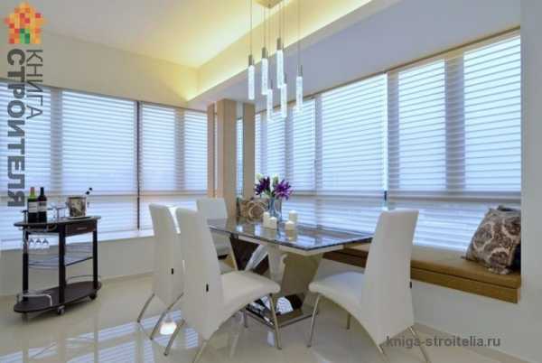 Противоположный эффект воссоздает обстановка второй квартиры. Легкой, воздушной и праздничной атмосфера стала благодаря яркой подсветке, хрустальным светильникам, многочисленным зеркальным элементам и, конечно же, благодаря мебели со стеклянными и металлическими деталями, белоснежной и кремовой обивки из эко кожи и цветным диванным подушечкам. Даже панорамные окна с подоконниками обустроены комфортными мягкими сиденьями кушетками. («Галерея из 40 фото обустройства окон в интерьере» , «Виды подоконников» , «Подоконник своими руками, идеи использования подоконника » ). Квартира невероятно светлого и приятного дизайна наполнена свежестью и ласковым теплом одновременно. (Рис. 21, 22, 23)