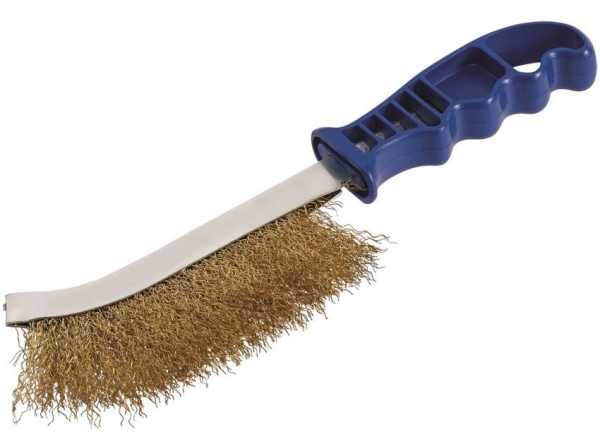 1. Жесткой щеткой из металла или наждачной бумагой с крупным абразивом проводим очистку материала от верхних слоев.