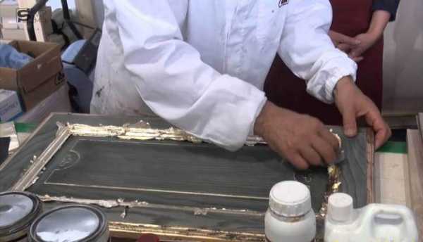 БИТУМ. Вроде такой состав ни коем образом не может быть связан с процессом искусственного состаривания, а вот и нет. Лак на основе битума довольно эффектно вычернит и подчеркнет выступающие части рельефного рисунка, его граней и углубления. На такую обработанную поверхность легко ложится позолота толстым слоем или лишь еле уловимый налет. При окончании работы наносится состав для укрепления, так называемый шеллачный лак.