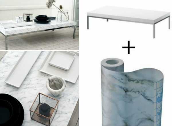 Самый простой и красивый вариант декора стола – самоклеящаяся пленка. Этот доступный материал поможет имитировать любое покрытие – от редких пород древесины до мрамора. Также на нем могут быть какие угодно рисунки, узоры и текстуры.