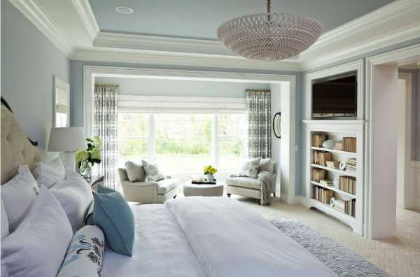 Наиболее логичным расположением кресел или дивана гостиной зоны, находящейся в спальне, можно считать место у окна. И не только потому, что это пространство не используют для расположения кровати (не говорим об исключительных случаях малогабаритных помещений). В результате такой планировки, мы получаем не только место для отдыха и приватных бесед, но и комфортную зону для чтения. В дневное время здесь достаточно естественного освещения, для вечерних сумерек необходимо предусмотреть наличие источника искусственного света – напольный торшер станет отличным вариантом.