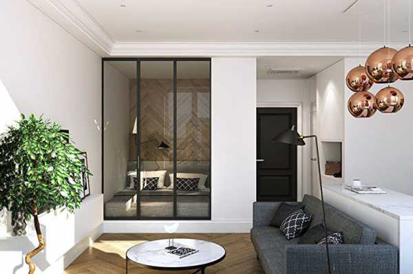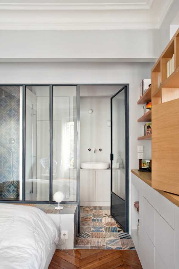 Основной плюс стекла – возможность проникновения света. Поэтому стеклянные перегородки в помещении с одним окном – это еще и способ добавить естественный свет в темную часть комнаты.Дизайн: Бюро «Общая Площадь»