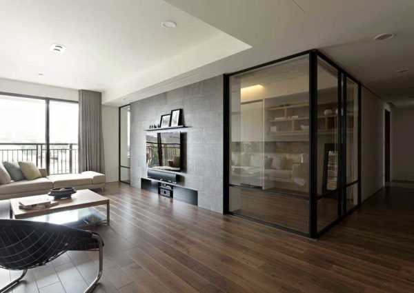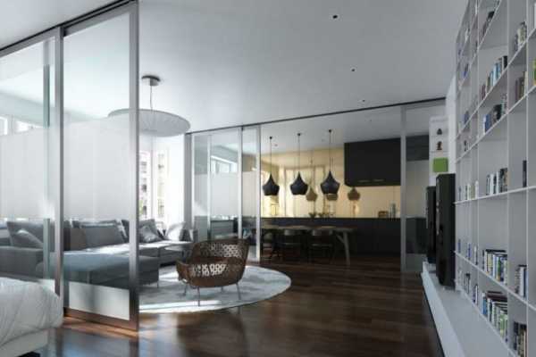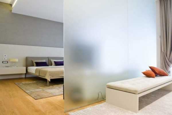 Использование стеклянных перегородок для зонирования пространства в комнате