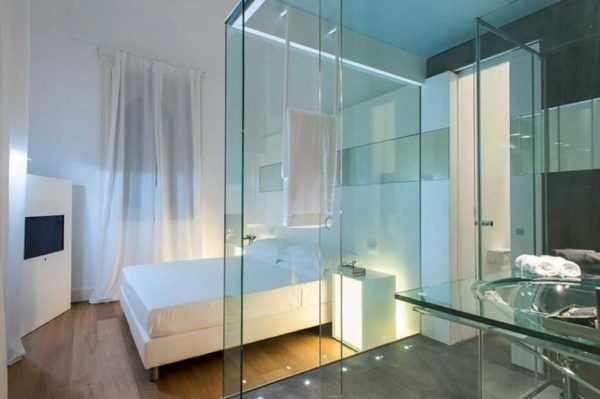 - перегородки из стекла создают зрительный эффект увеличения пространства;