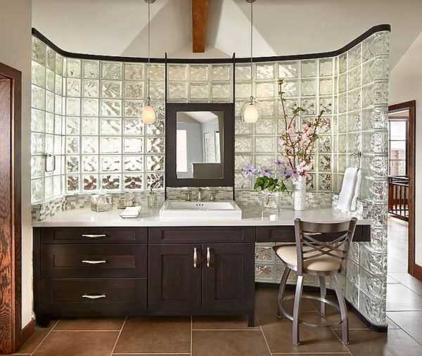 Стеклоблочная перегородка в ванной комнатеДизайн перегородок из стекла