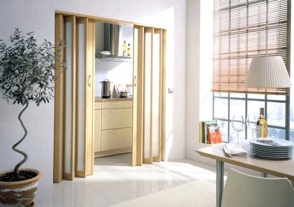 Еще один интересный вариант временной перегородки — гармошка. В отличие от ширмы, ее невозможно переносить с места на место, но зато можно просто отодвинуть и сложить. Для сооружения такого заграждения также потребуется проложить направляющие на потолке и полу.