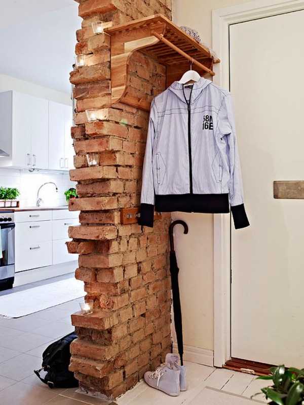 Дополнительную стену, возведенную из кирпича, обычно не выделяют, наоборот, ее отделывают, как и другие стены в помещении, и украшают картинами, бра или зеркалами.