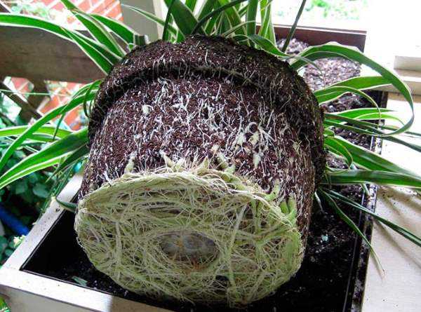 - Растению становится тесно в горшке. Это просто узнать: достаточно извлечь цветок из горшка вместе с комом земли. Если корневая система туго оплетает весь ком – значит, пришло время подобрать ёмкость больших размеров.