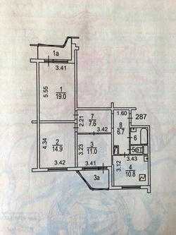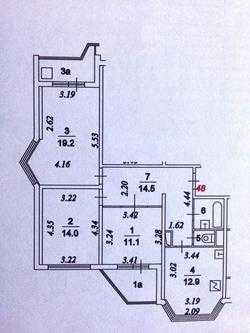 4. Серия П-44- планировка с размерами трехкомнатной квартиры.