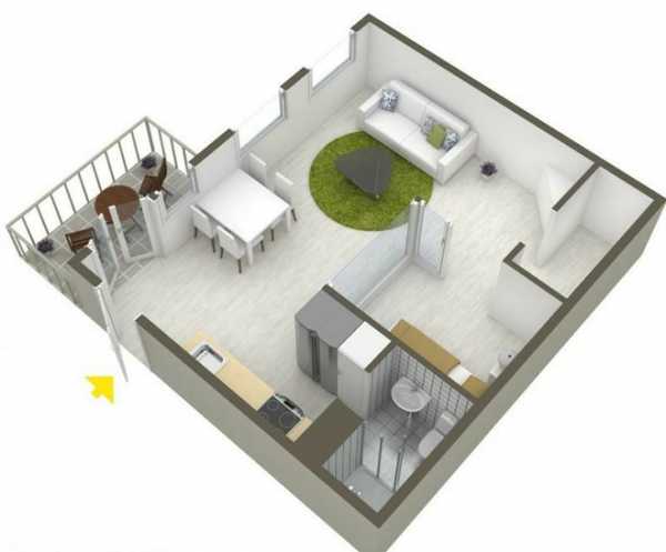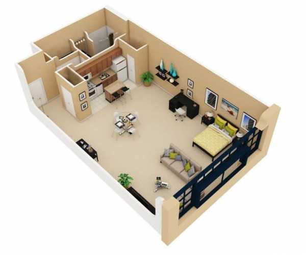 Вид сверху — визуализация всей квартиры площадью 20 кв.м.