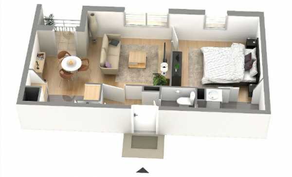 Планировка маленькой квартиры-студии требует разделения на следующие функциональные зоны: