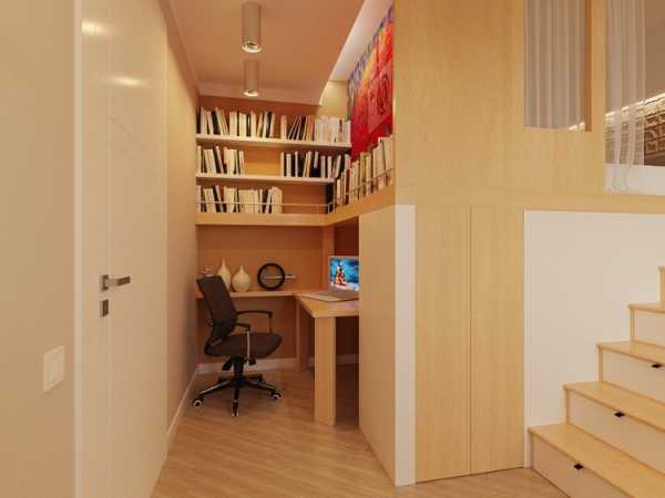 - Рабочий кабинет. Его можно себе позволить, если речь идет о планировании квартиры более 30 кв. м. Для кабинета требуются перегородки, которые позволят работать в спокойной обстановке без отвлекающих факторов. Если площади недостаточно, место для него следует выделить в гостиной, на кухне или в спальне;