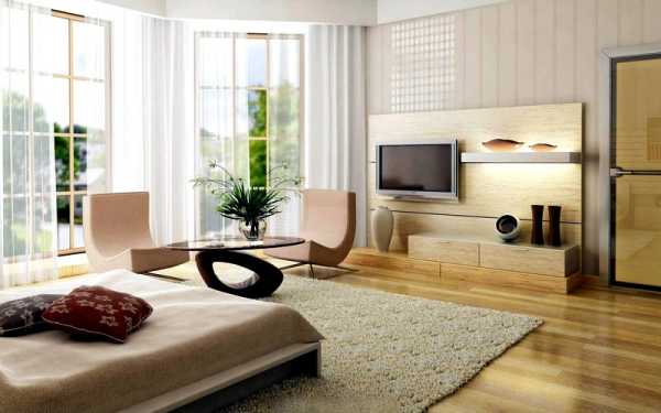 - Гладкие стены, а также светлые цвета «расширят» пространство.