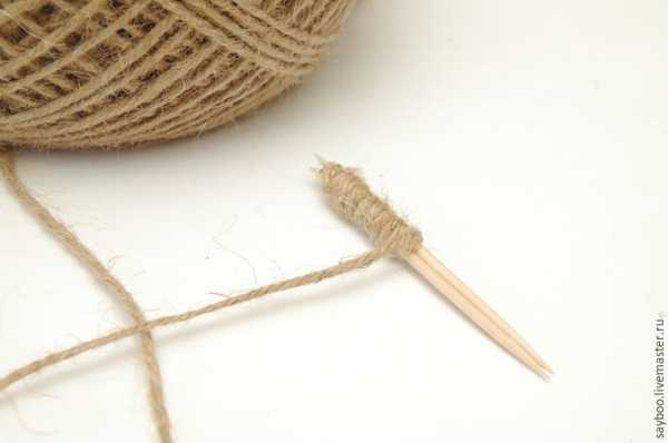 Кончик нитки заправляем и подклеиваем вовнутрь контейнера.