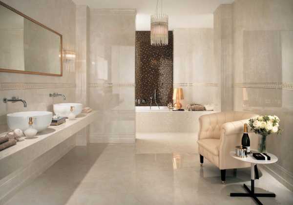 Керамогранит для стен в ванной – чаще всего глазурованная или полированная плитка. Настенный слой отражает свет по максимуму, обеспечивая хорошее освещение помещения и зрительно его расширяя. Это особо ценно для небольших площадей.