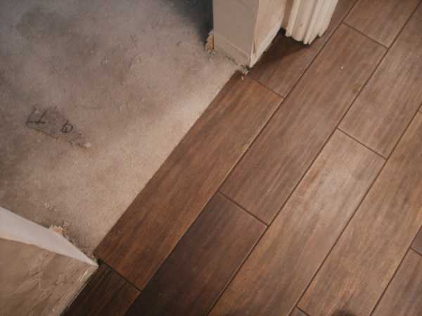 Почти как настоящее дерево смотрится фактурный материал. Он изготавливается методом структурирования: под прессом создается текстура паркета или досок. Чтобы схожесть была еще большей, плитку на пол делают не традиционных форматов, а в виде паркета или дощечек. Так получается как бы декоративный ламинат, паркет, массив.