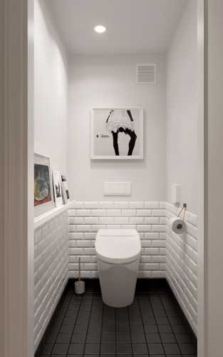 PHOTO- Eric Piasecki for Elle DécorПод вариант №2 (маленький санузел) подходят все гостевые санузлы и туалеты в обычных квартирах. Площадь такая, что там скромно умещаются только самые необходимые сантехнические приборы: унитаз, раковина и гигиенический душ.