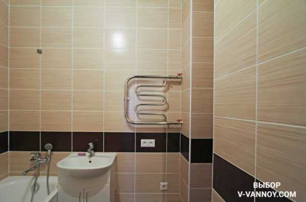 Такой вариант подойдет людям, мечтающим о плитке в санузле, но не имеющим достаточных средств. Смотреться подобный ремонт будет интересно. Важно: помните правило про 255 см.